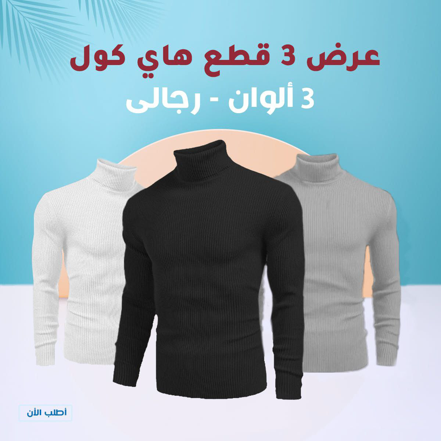 عرض 3 هايكول رجالي بخامة عالية الجودة، ألوان متنوعة (أبيض – أسود – رمادي – كحلي)، مقاسات متعددة، مثالي للشتاء واللبس الكاجوال.