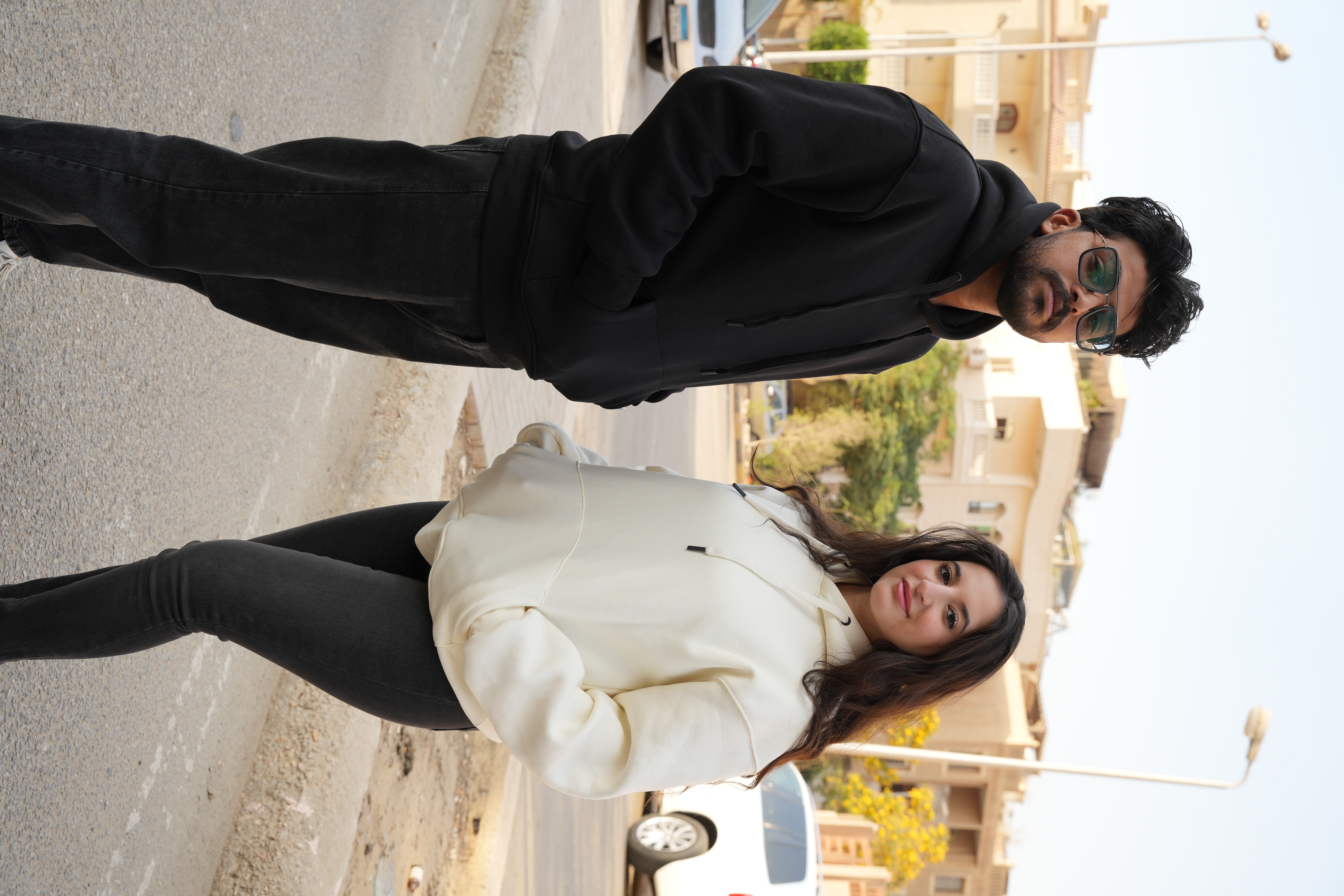 هودي حريمي و رجالى اوفرسايز من غير تفاصيل إضافية.