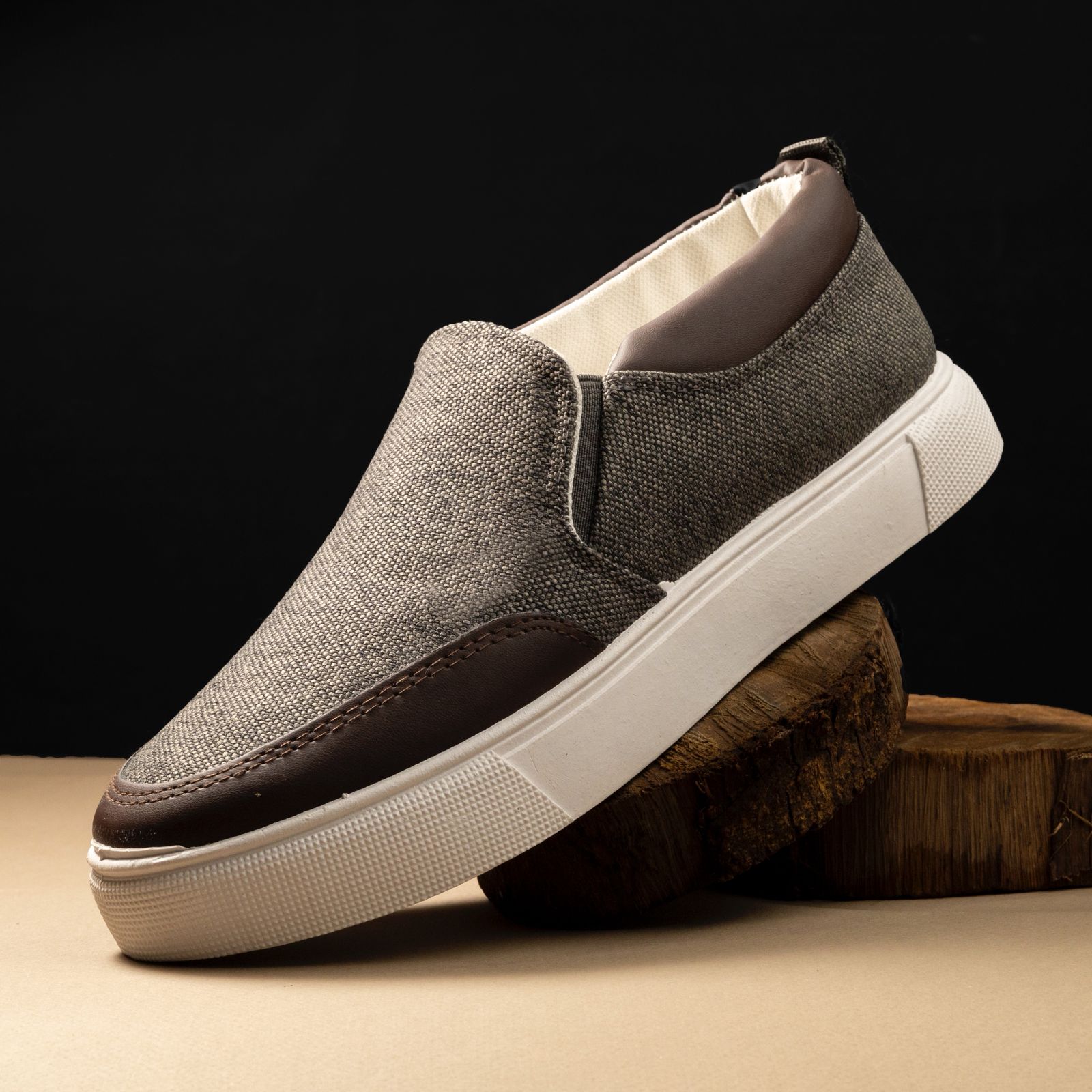 الكوتشي مصنوع من خامة تريكو مرنة مع تفاصيل من جلد سكاي تعطي شكل مرتب وثبات عند الحركة.